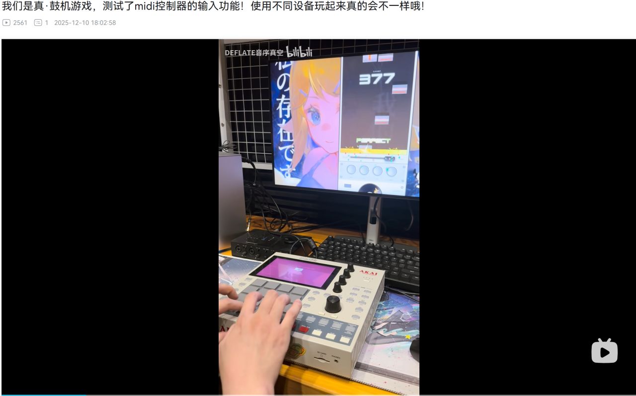 當然,你也可以選擇用更有創意的方式來進行遊戲,比如Midi控制器體驗真·鼓機操作,製作組也早早給出了教學範例Orz: