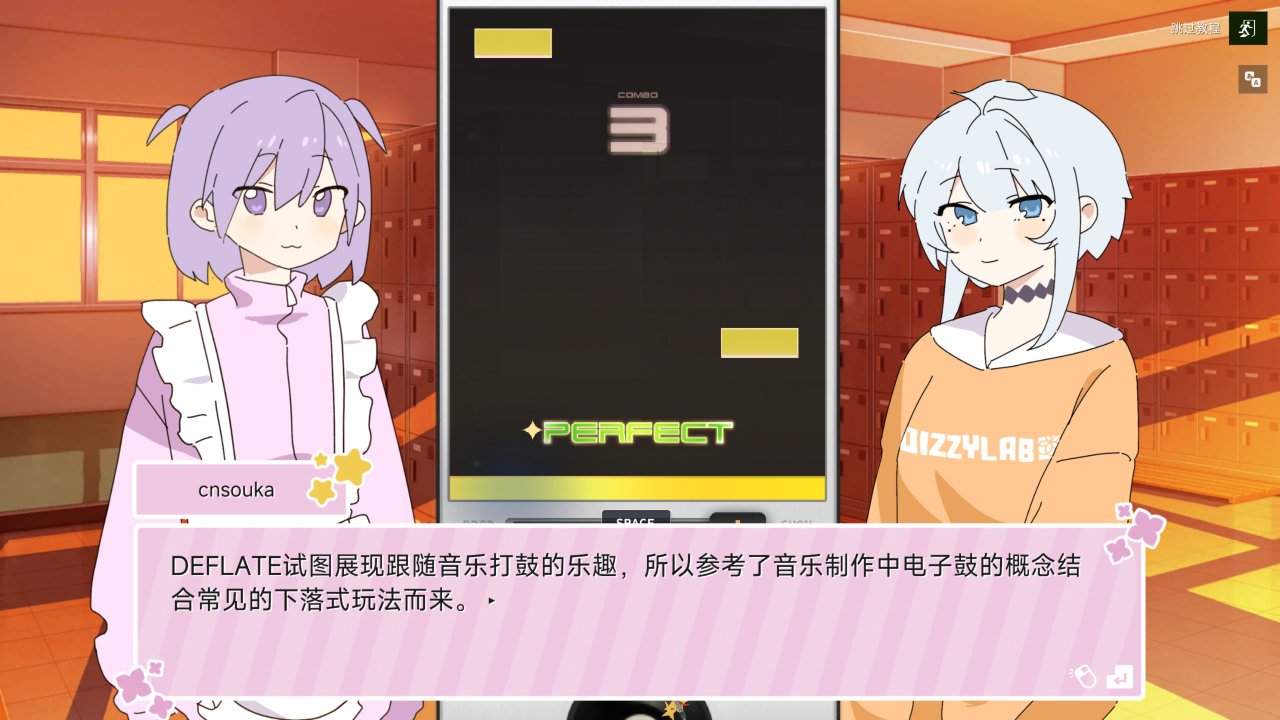 很顯然這羣老炮們折騰的心遠不止於此,比如最近那個讓粉絲們期待許久的音遊《DEFLATE》就正式上線Steam了,這部充滿個性的作品也雀食很符合dizzylab的氣質:有活力、不拘泥於俗套、永遠保持對小衆文化的熱愛。