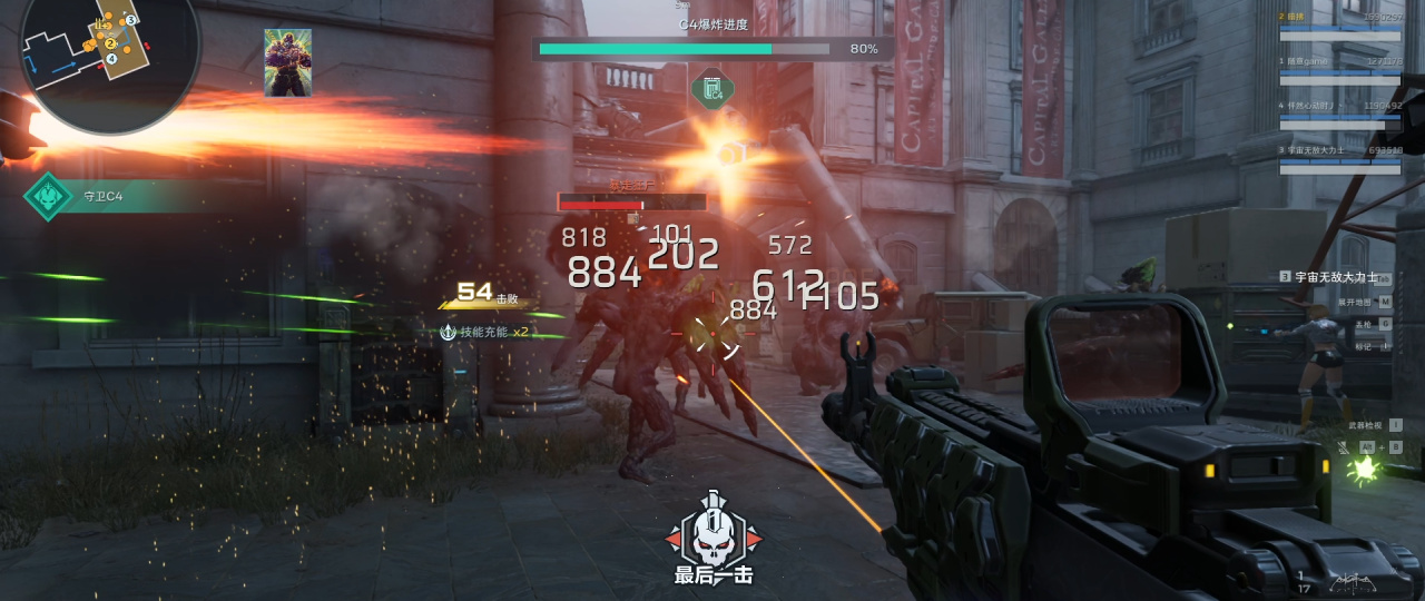 高难度下,C4守点输出容易不够,这时候你没必要站在C4面前怼怪。