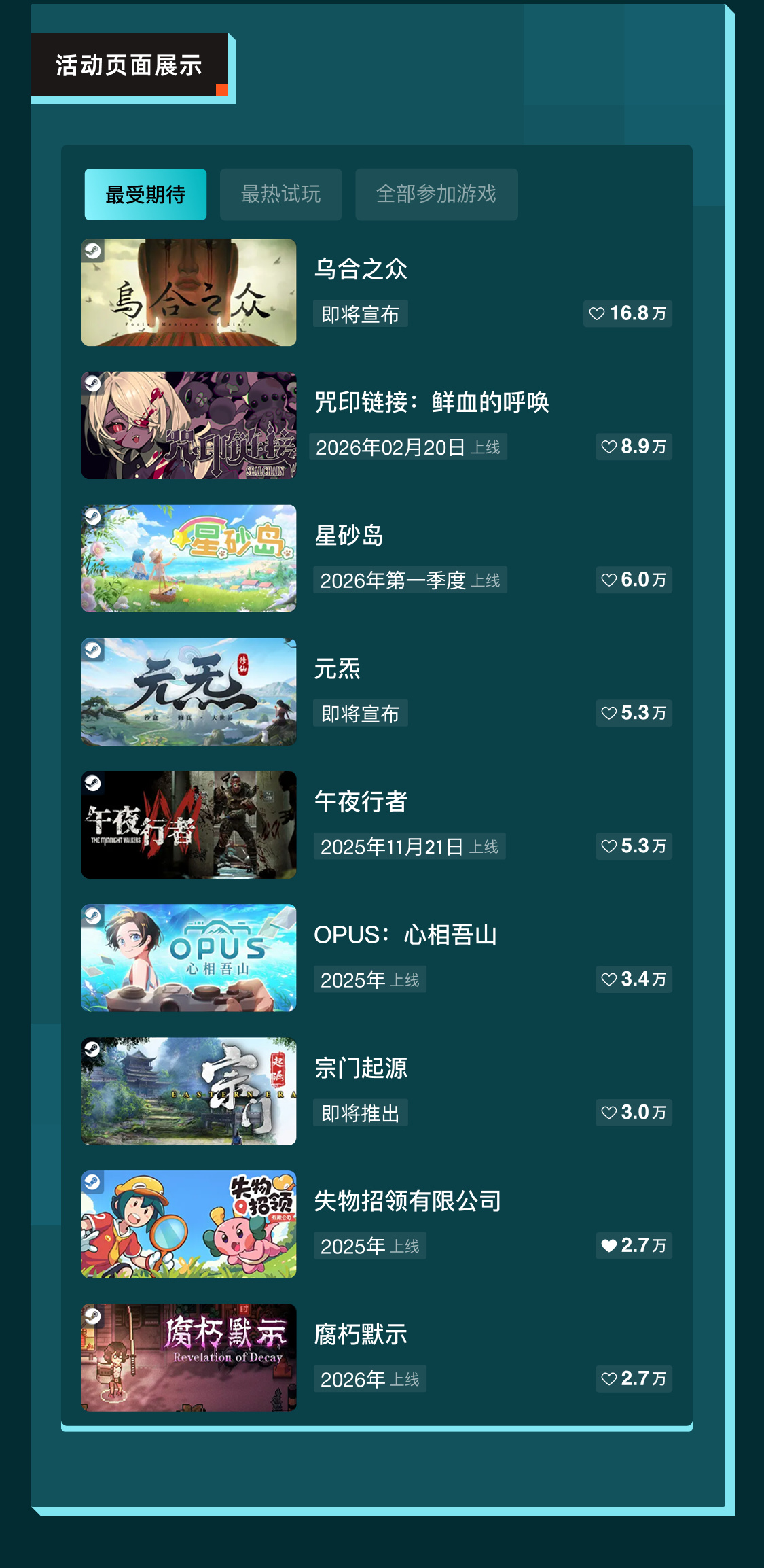 • 新品節相關活動頁/遊戲庫等場景的展示機會:方便玩家獲取 Demo 信息與動態(以實際展示爲準)。