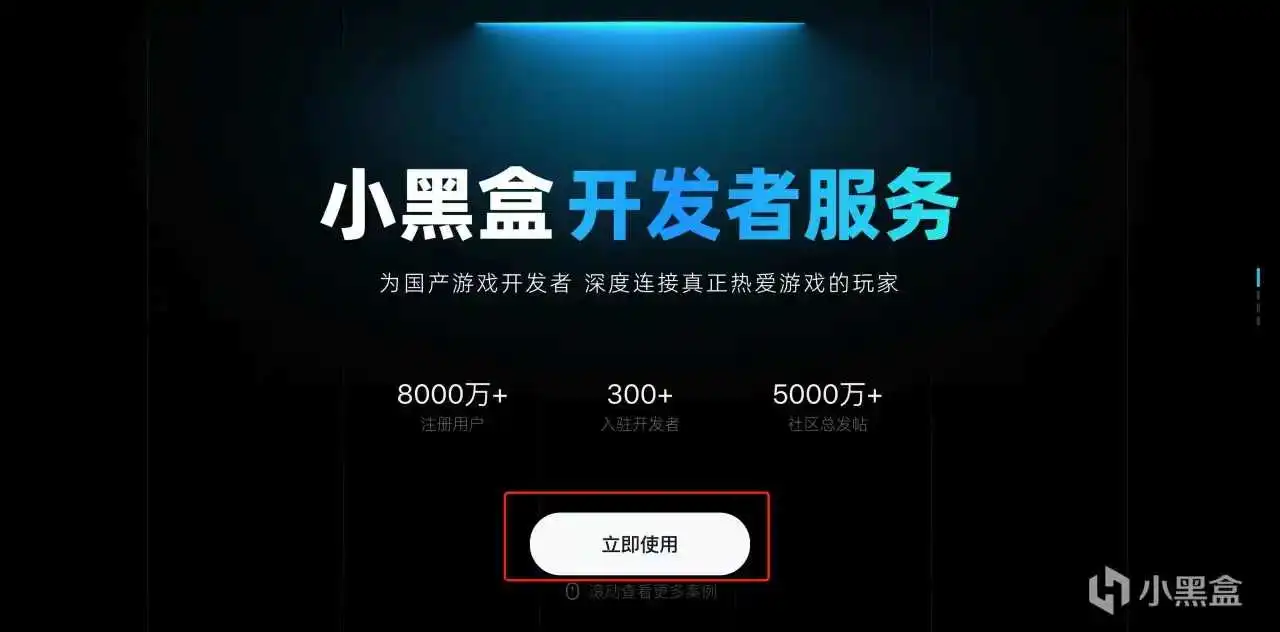 第一步:進入小黑盒開發者服務平臺,點擊“立即使用”