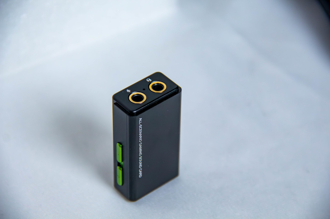 接口分离是亮点:它把耳机输出和麦克风输入接口分开了。你可以用普通的耳机+麦克风二合一接口。也可以接独立的电容麦、领夹麦,声卡同样能给麦克风做降噪处理。