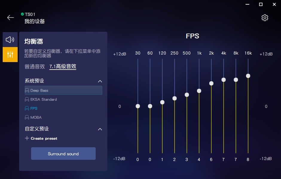驱动里有针对不同游戏的预设,比如FPS、MOBA。你不需要懂太多,切换到 “7.1高级音效”里的FPS模式就行。