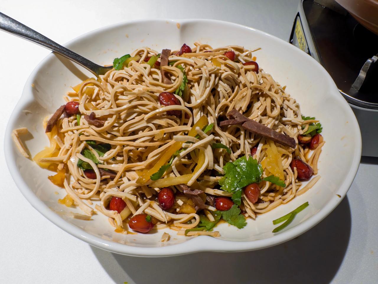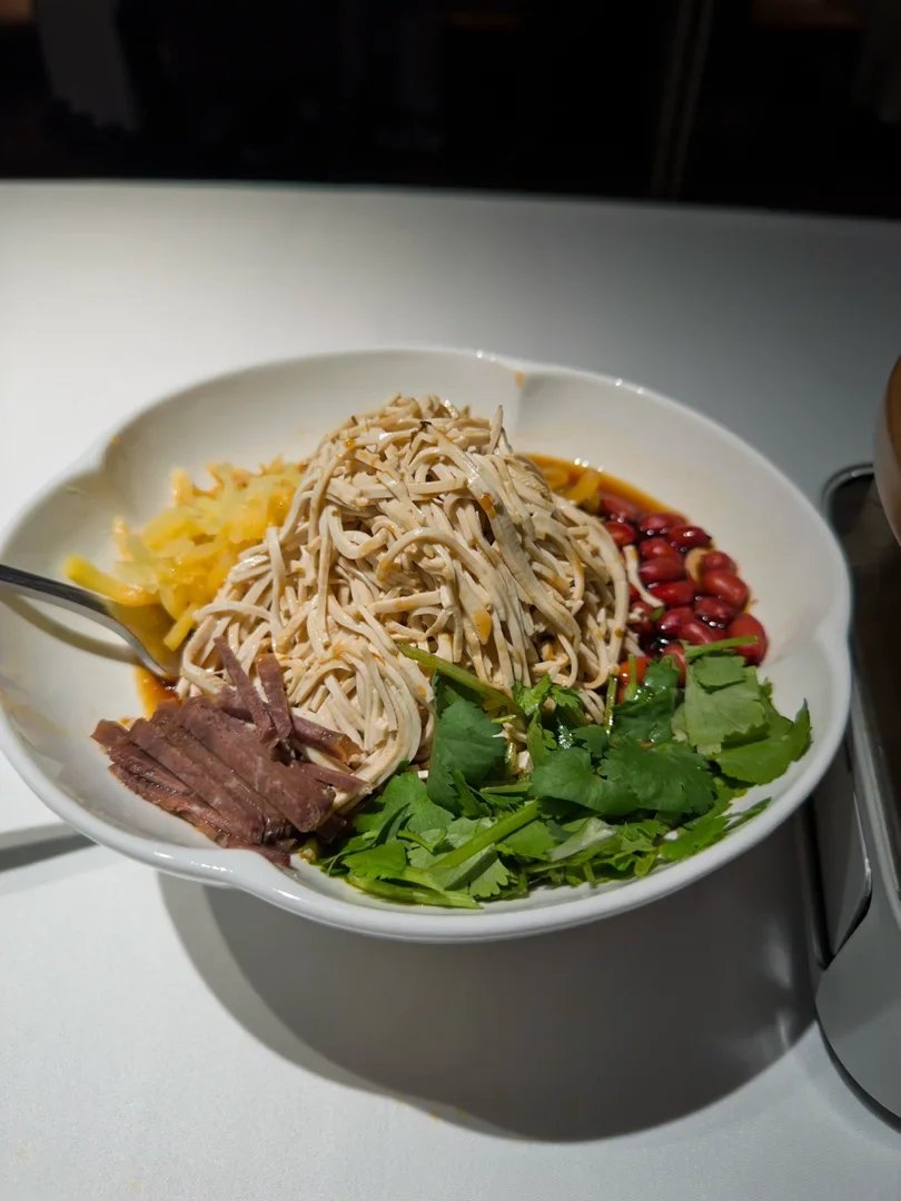 姜丝、肉丝、榨菜、花生、香菜、豆干丝