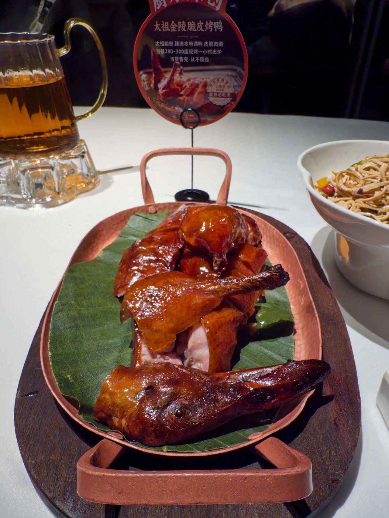 这个应该不是那种南京烤鸭吧,不过很好吃,可惜味道有点淡,但这个皮看着就很棒