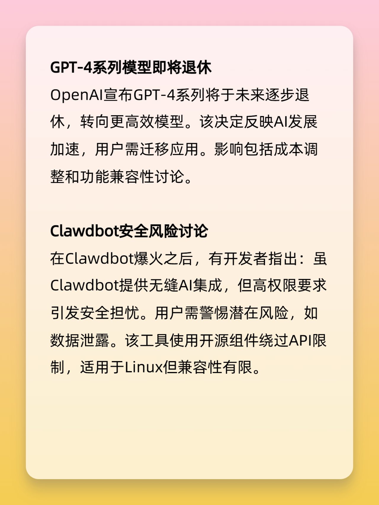 · Clawdbot工具一夜爆红:无界面AI路由器连接多大模型,让Mac Mini销量激增,强调本地无缝体验。