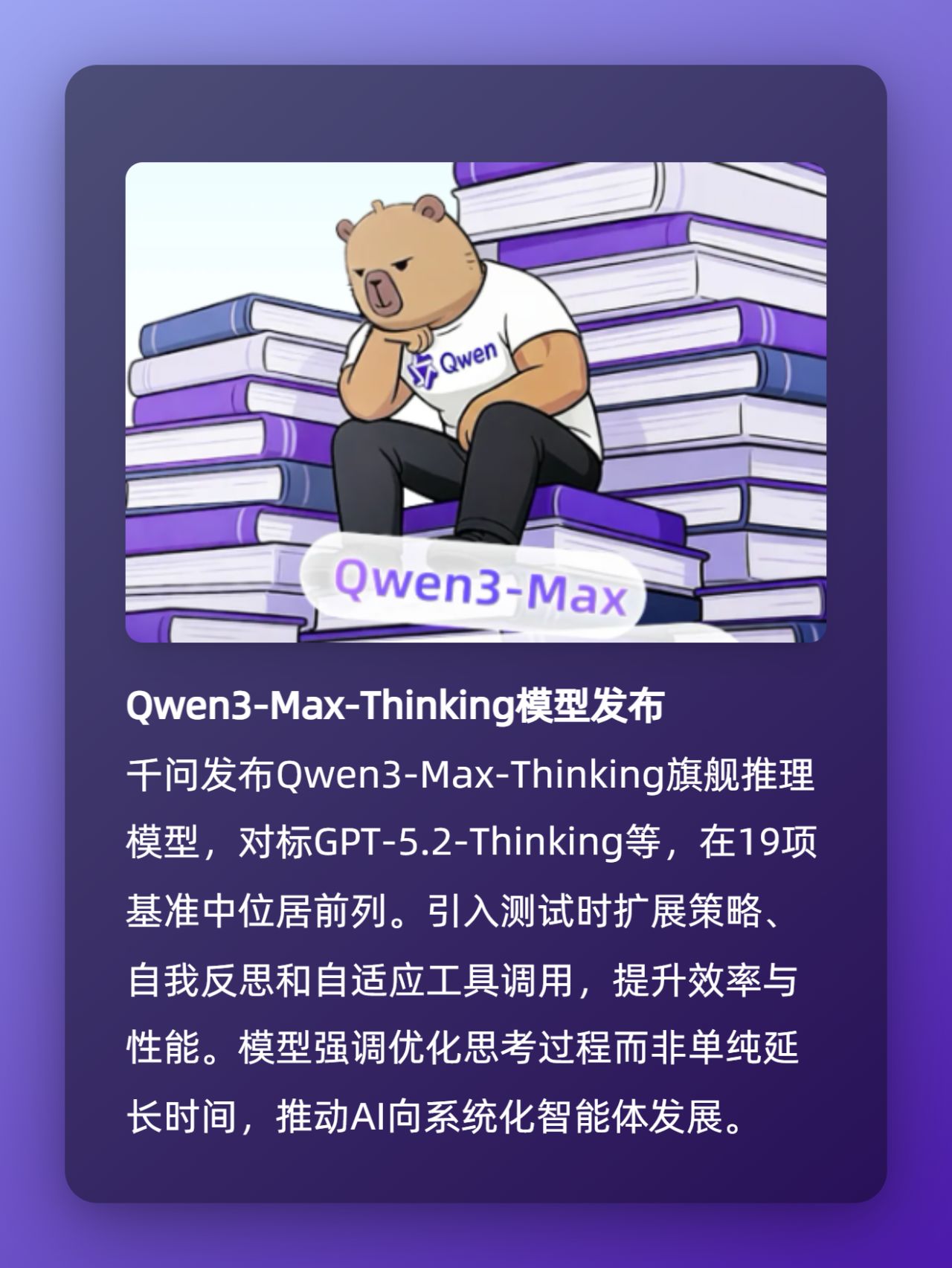 · Qwen3-Max-Thinking模型上线:对标国际顶级模型,在多项基准领先,更强更快更省钱,优化推理效率;