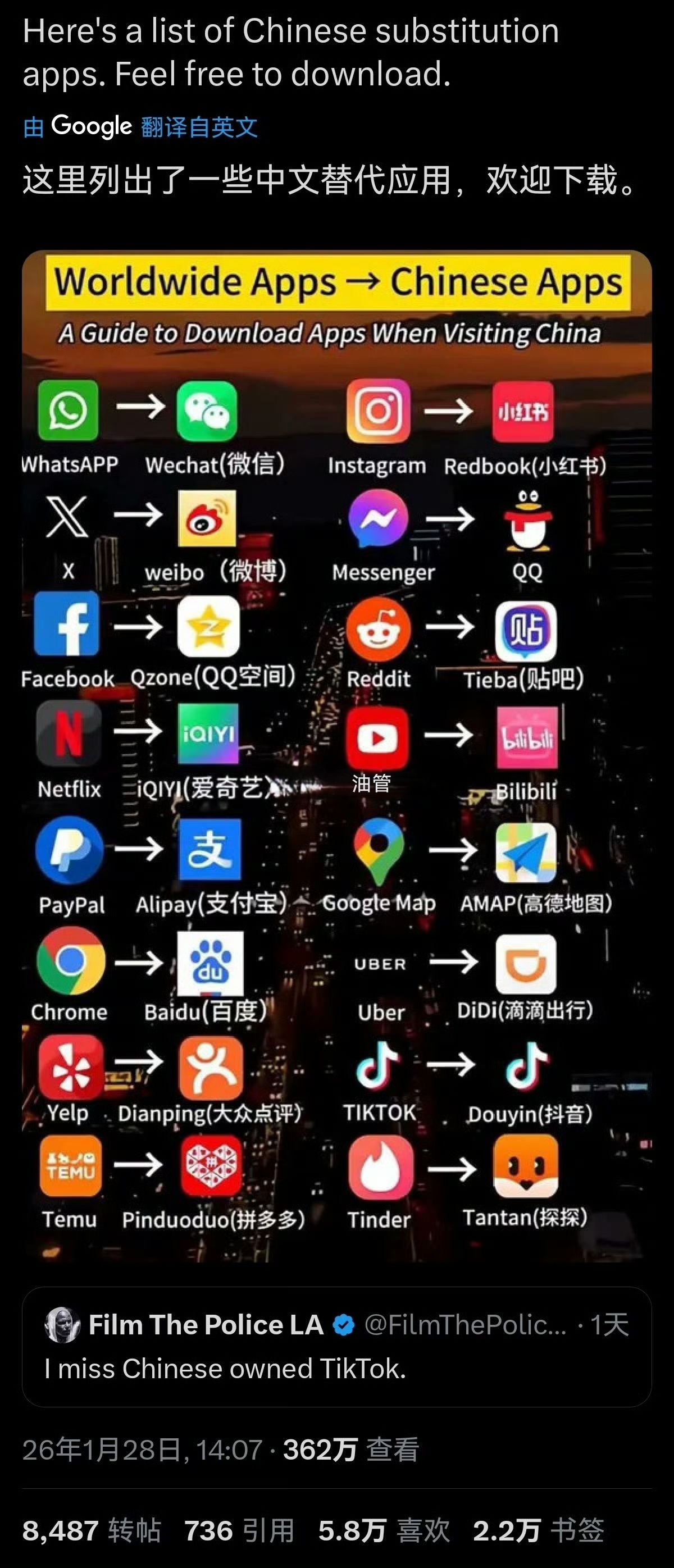 倒反天罡hh,米國網友無比想念“洋抖”沒被轉讓給米國公司的時候,同時也擔心米國公司的大手伸向其他軟件,於是各種谷歌系app的“替代版”在推特被頂上熱帖