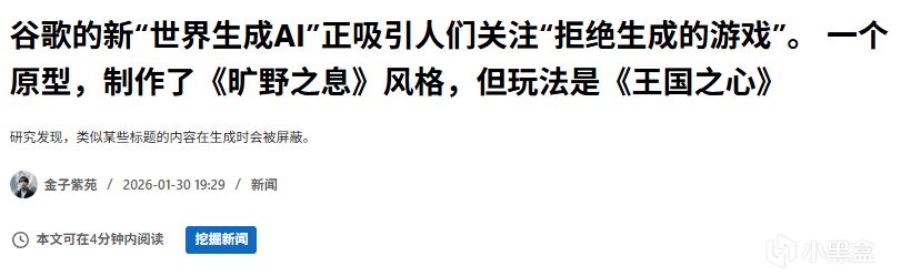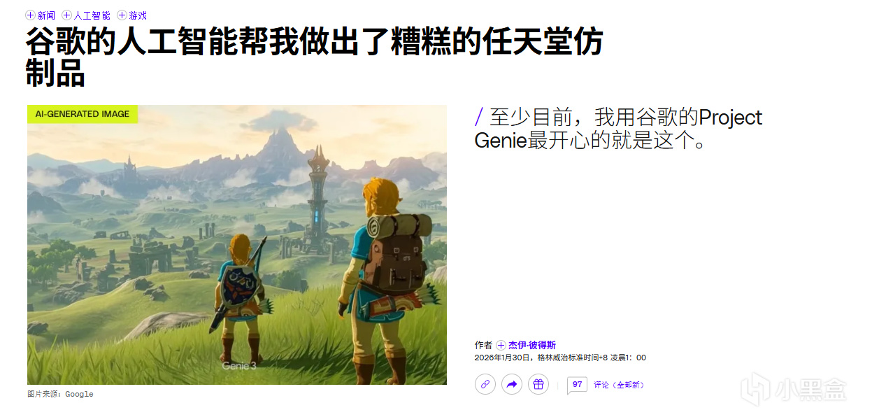 谷歌AI新作能生成《曠野之息》世界,卻拒造《王國之心》