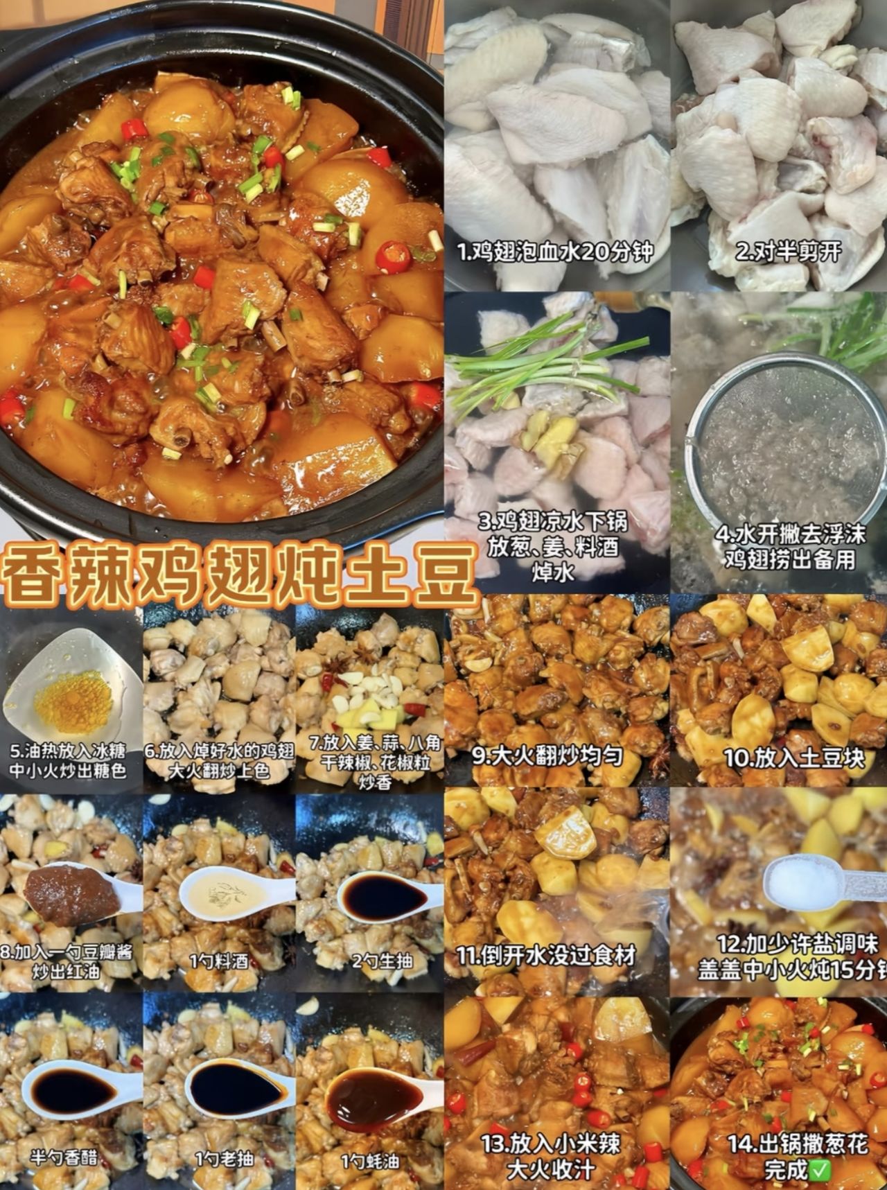 雞中翅、土豆、洋蔥、青椒、生薑、大蒜、豆瓣醬、火鍋底料(小塊)、生抽、料酒、鹽