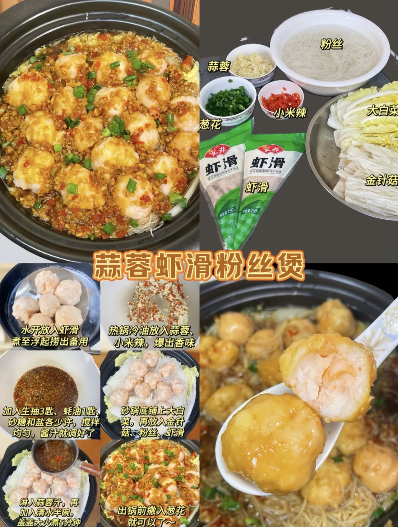 三、蒜蓉蝦滑粉絲煲(鮮辣入味、低脂解饞)