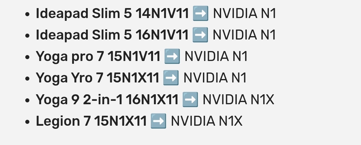 英偉達N1系列將於今年推出,首批搭載該芯片的筆記本電腦將於2026年第二季度上市,並在2026年上半年晚些時候全面鋪貨,目前已知的首批機型包括戴爾XPS和聯想拯救者。