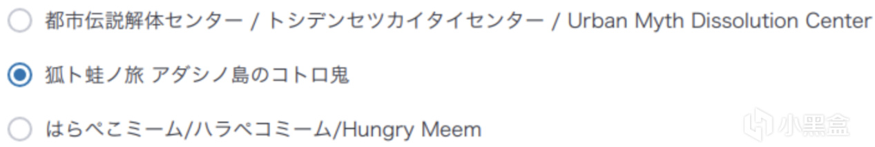 Step 2 在第一个问题中,请选择 「狐ト蛙ノ旅 アダシノ島のコトロ鬼」