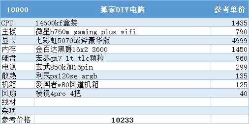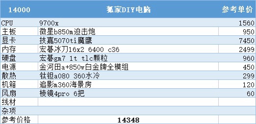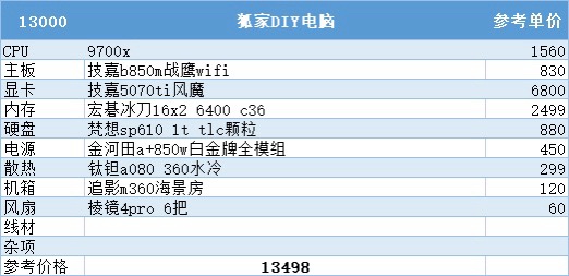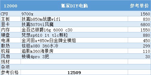 真的好想在这个预算塞进去个5070啊!只能这样了,如果觉得超预算太多的话cpu可以换5700x或者显卡换个便宜200的万丽星云之类的丐卡