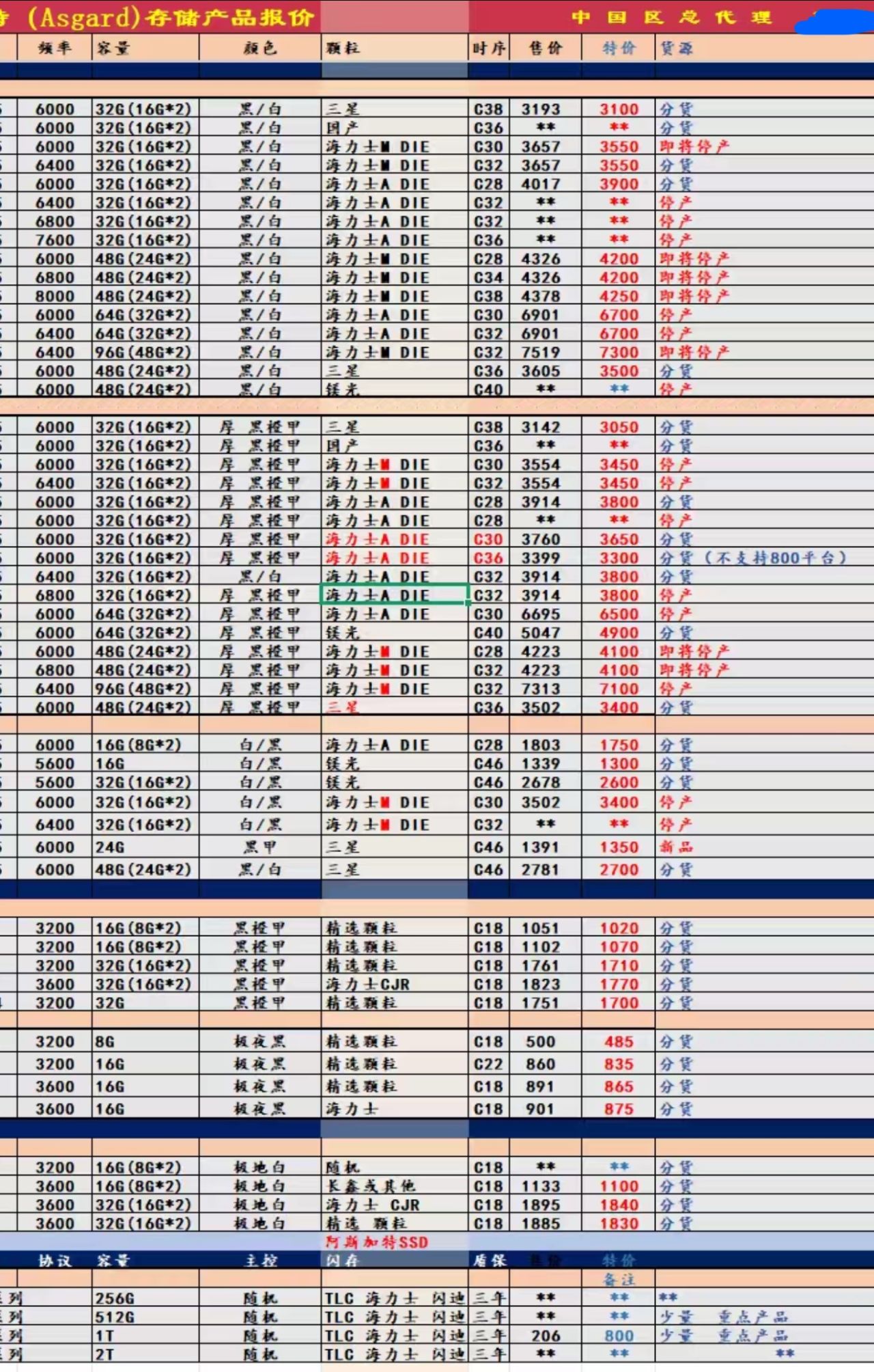 目前科摩斯的报价还在更新,由于还有效所以不能给你们看,只能跟你们说最便宜的48g 6000 c28也要3900才能提了,前几天宏碁最后一次报价还是3699呢,科摩斯价格还要比宏碁低不少,这就是为什么我说年后还要起飞