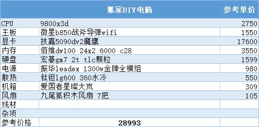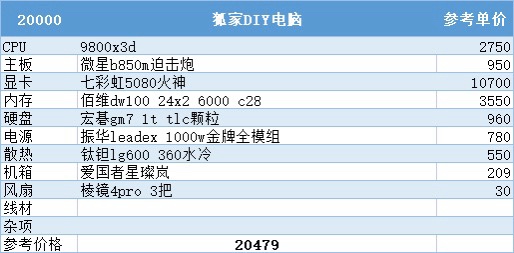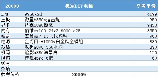 依旧给大家准备了两套,第一套是上到9950x3d,专为需要生产力的玩家准备,无论是生产力还是游戏性能都是顶尖的