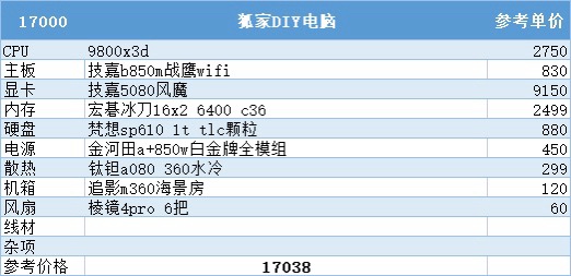 非常勉强的上到一个5080,只能说目前5080这个价格毫无性价比可言了,这个预算还是尽量上70ti吧,80能干的70ti也能干,富哥和嘉豪随意