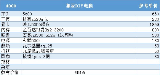 两套方案,区别就在于5600和5700x以及一个512g硬盘一个1t硬盘,cpu性能区别不大可以不换,但实际使用还是建议上1t硬盘,显卡方面可以考虑加400上5060ti,现在60涨这么多倒显得60ti有点性价比了