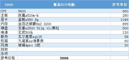 办公机,只能玩玩小游戏,这个预算的全新配置我是实在压不下去价格了,我感觉这已经是我能接受的底线了,我不想学某些人那样给人用七彩虹主板配金邦内存之类的炸裂搭配,目前想要花3000以下买到一台全新的正经能打游戏的配置已经不可能了