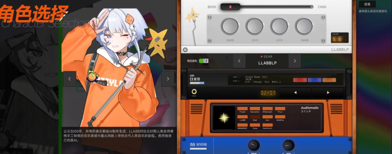 遊戲內有多位可選角色,每一位都精心對應一款經典鼓機的獨特音色,爲玩家呈現不同的聽覺質感。