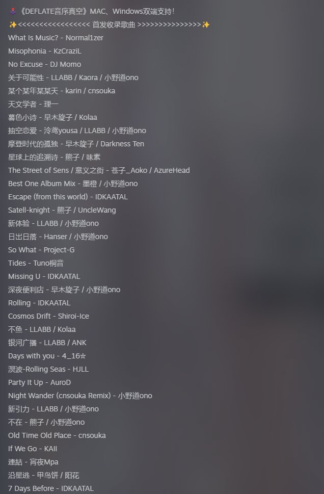 遊戲的曲庫,源自 dizzylab 平臺上衆多的音樂創作者,他們自發上傳了近千張專輯,構成了一個充滿活力的同人、原創、獨立音樂的寶庫。