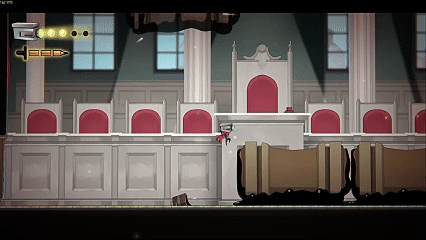 BOSS战则与平台跳跃玩法相结合,空中造平台躲技能,左右蹬墙跳攻击,迷宫限时竞速。没有血瓶,攻击与回血绑定。平A回勇气,积慢勇气打出回血攻击。初始4滴血的低容错+BOSS的巨厚血条,初见很有压迫感,但熟悉之后很好打。