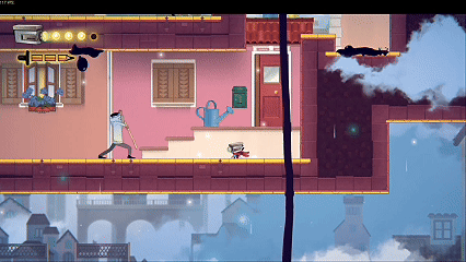 冲刺、安全平台(刷新跳跃cd)、单薄斗篷(二段跳)和紧身斗篷(蹬墙跑),随着进程推进,主角会解锁更多的能力,能够探索更多的区域(回头探索此前能力锁的地方)。相应的,游戏加入了一些更具挑战性关卡,限时竞速挑战+可视范围变小+迷宫岔路、左右相似图形找不同+限时平台跳跃。