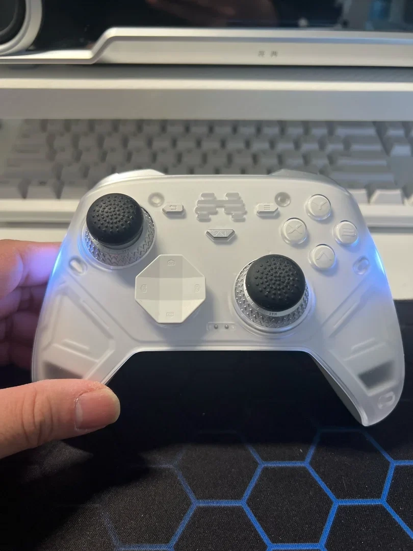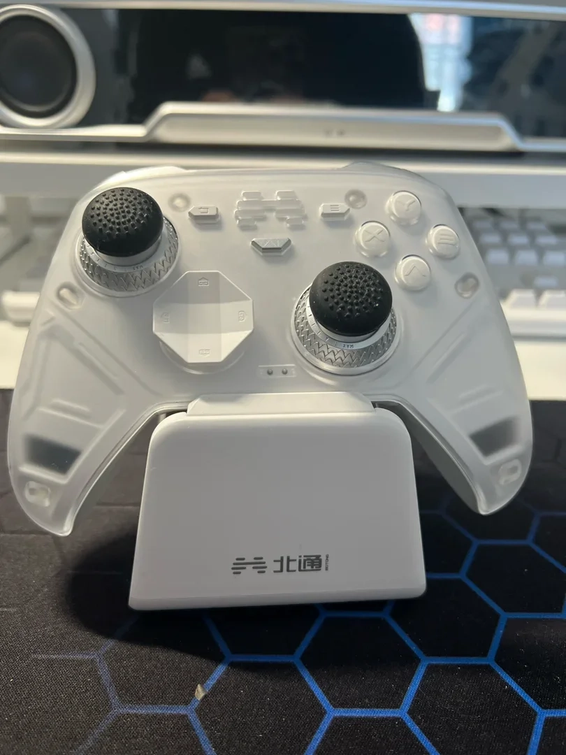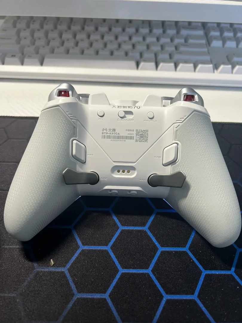 6.鲲鹏70:最终留下的手柄,纯白颜值,4个背键「包含2个金属背键」,2个尖键,双切扳机「加上自适应扳机」,又买了充电底座,收纳包,精英配件组成了完全体。「鲲鹏70磨具较大,适合大手」