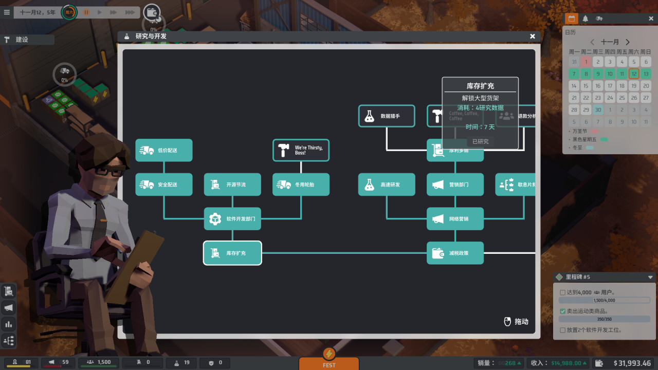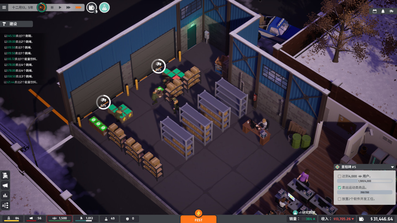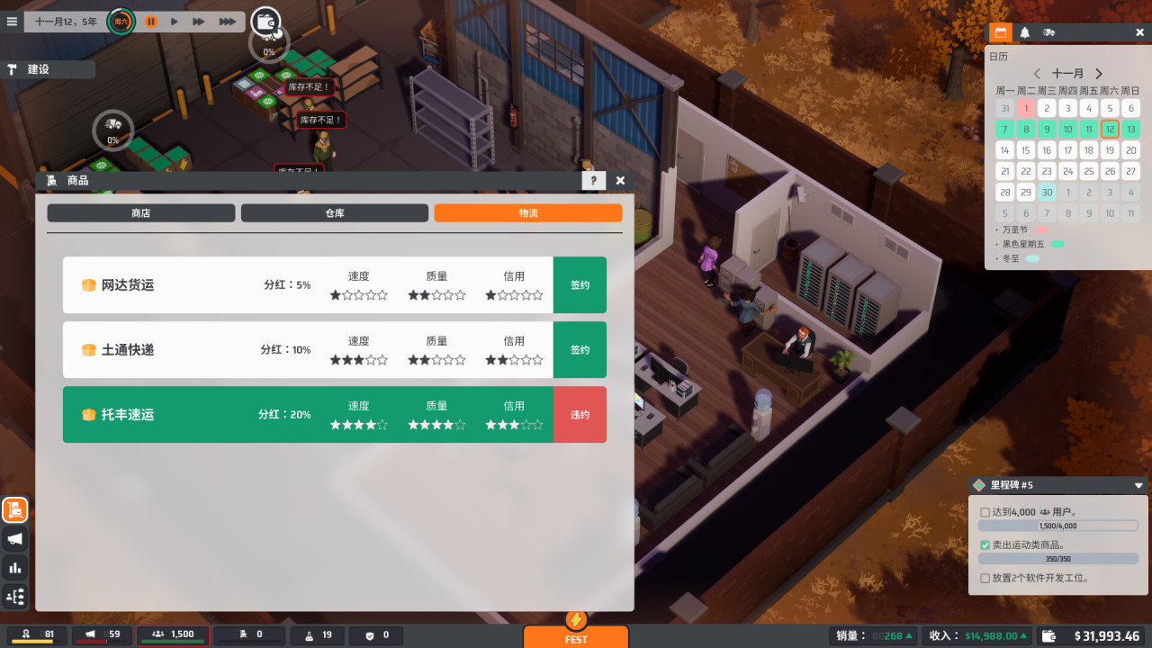 《電商大亨》採用等距視角的像素風風格,整個電商公司經營是從倉庫開始,進貨、籤物流合同、建倉庫、擴辦公室,一步步搭建屬於自己的線上電商商業帝國。
