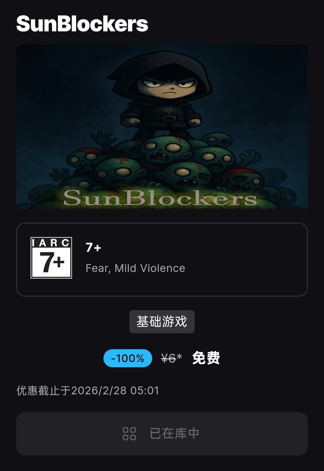 小伙伴们大家好呀,epic有两个隐藏的免费可以领取哦,分别是原价6的sunblockers和原价12的nightreaper2