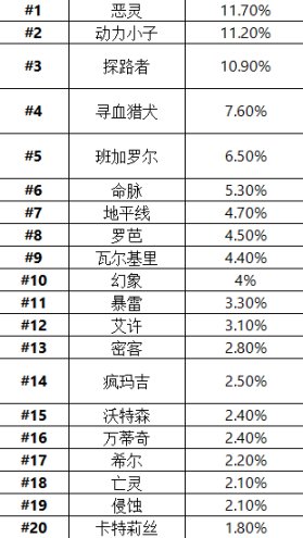 以上是截至 2 月 20 日左右的傳奇選擇率,排名會隨着百分比變化和各種選擇率繼續上下波動 ↑ ↓ 由於惡靈的終極增益,她在第 16 季超越動力小子,入駐榜首的位置;同時,由於削弱調整,希爾的選擇率直線下降;