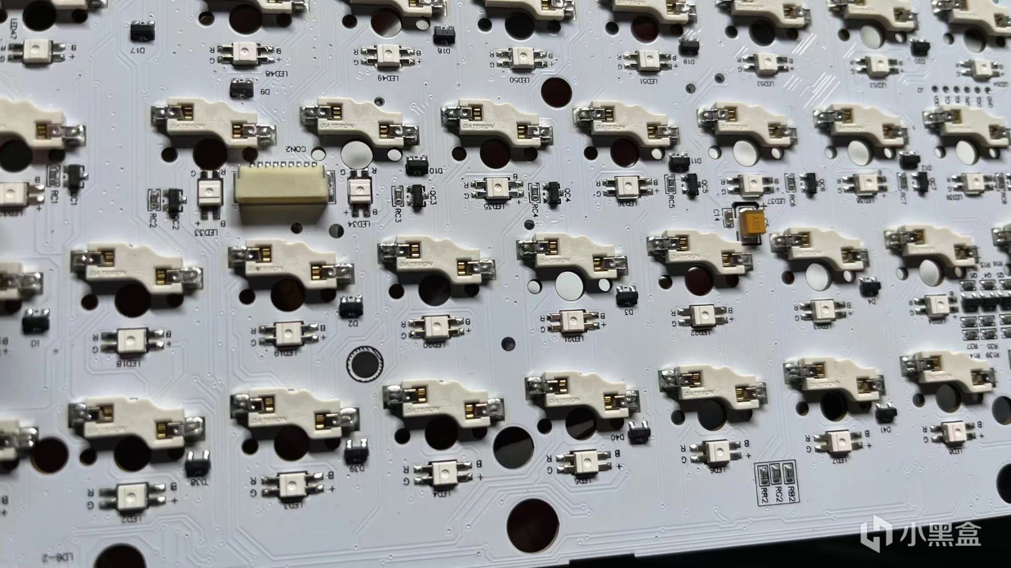 pcb采用的是一个上灯位,灯光亮度不错,四周也设置了一圈氛围灯,可以从键盘的侧边漏出来,但是这也是一个问题,因为加了一圈灯,就会让键盘的续航降低,这优劣并存吧,还是可以的。