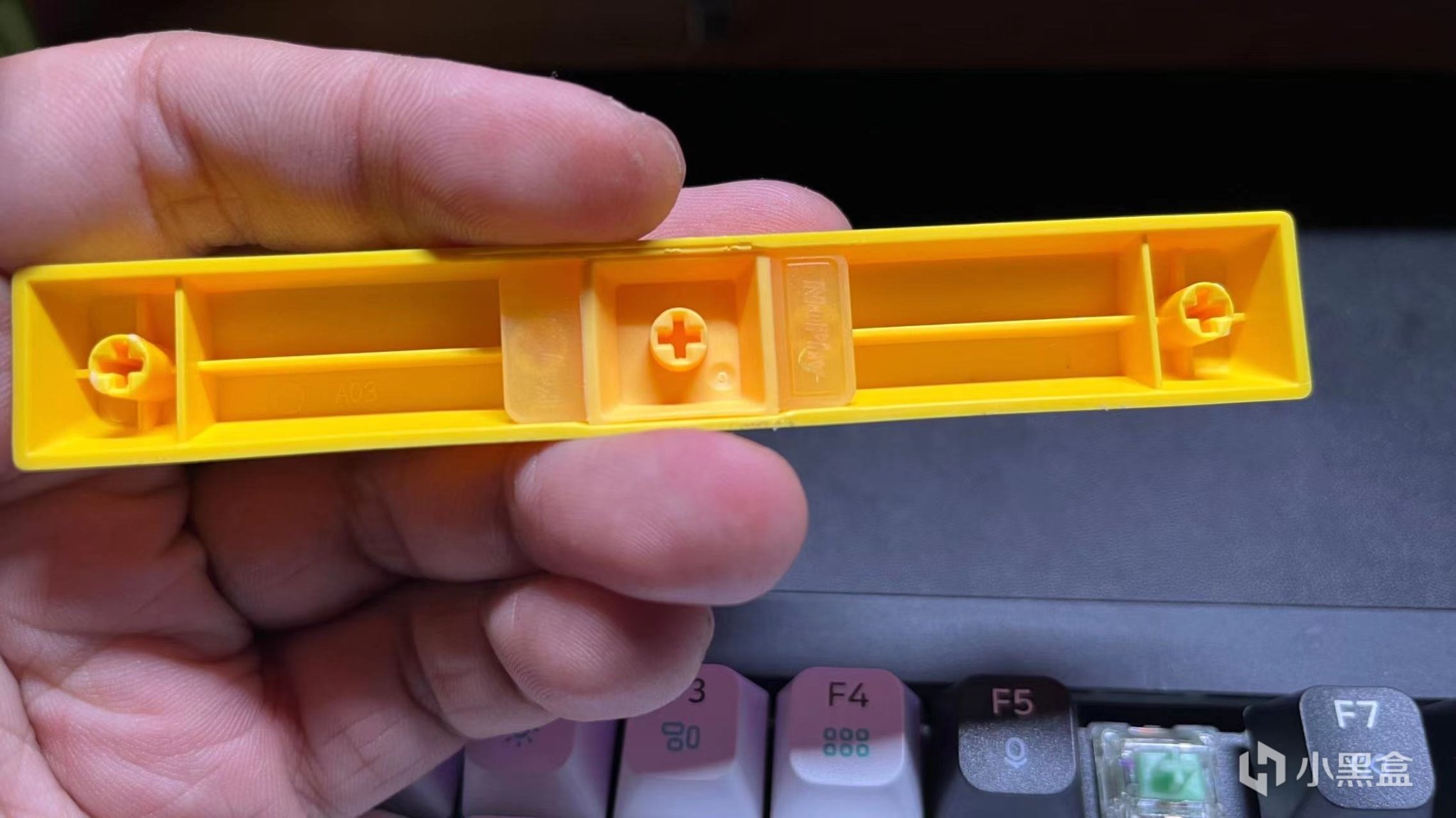 键盘空格这里也加装了消音硅胶条,能进一步的消除空腔音,来让键盘的声音更加的稳定,这里我的评价是,细节处理的不错。