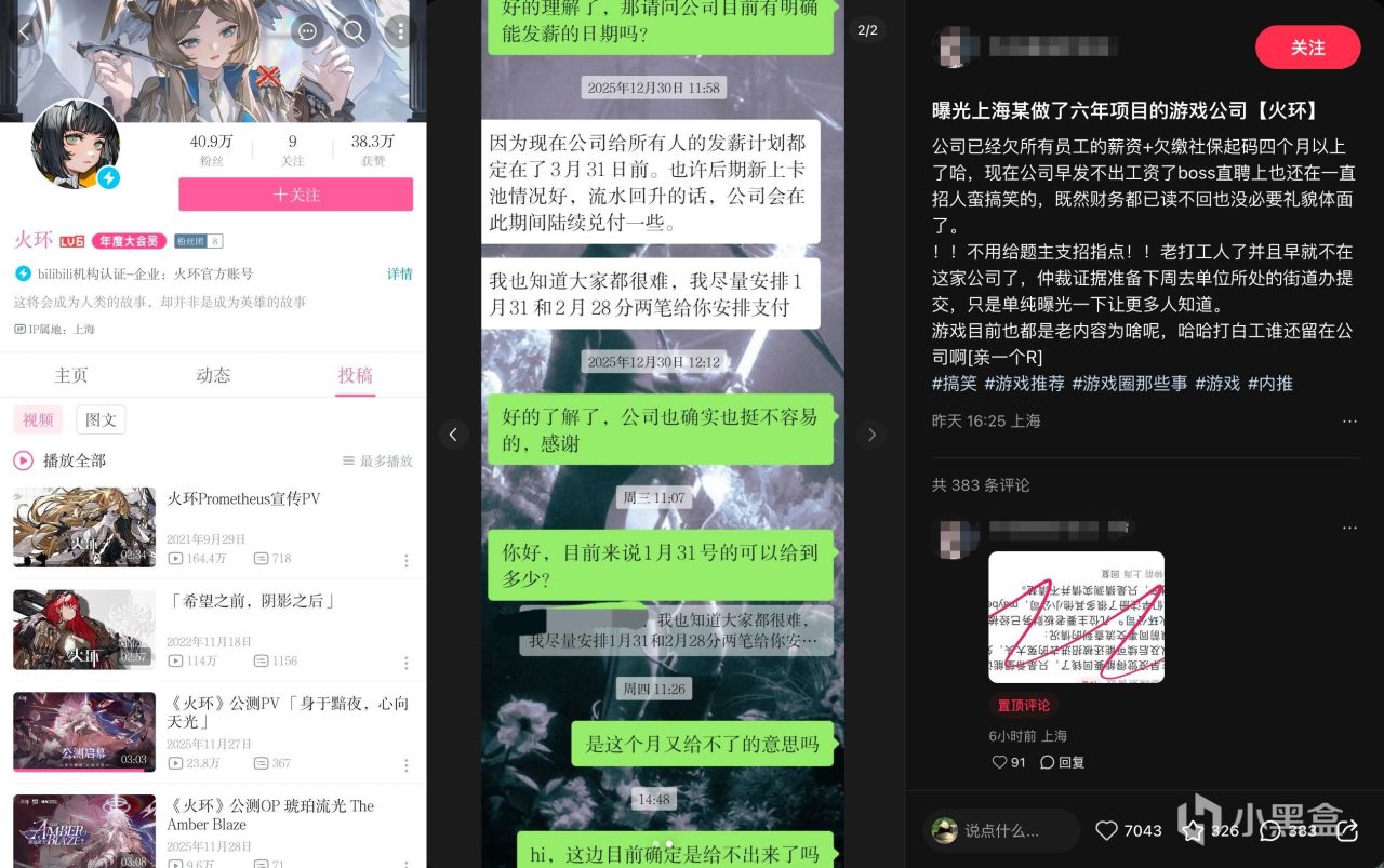 1 月 31 日,农历新年进入倒计时。一位自称是《火环》研发商上海月胧吟网络科技有限公司(下称“月胧吟”)的前员工,在小红书公开爆料:公司已拖欠全体员工薪资及社保至少四个月以上,多次沟通无果。