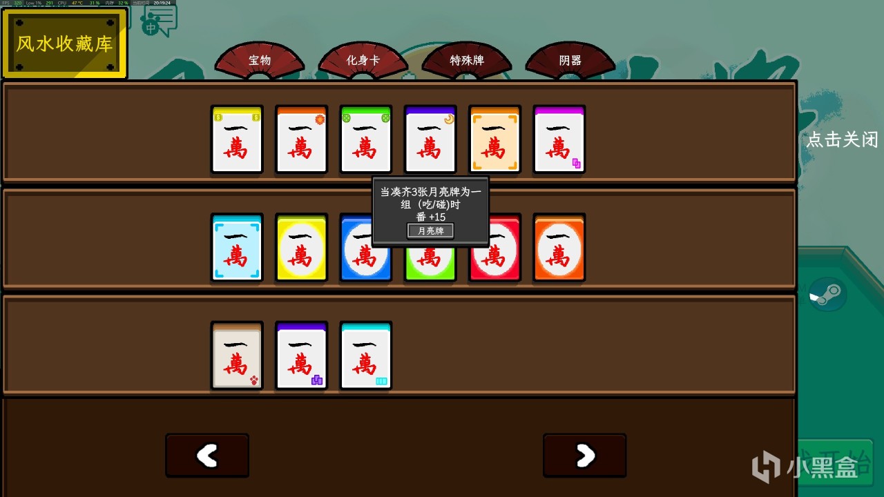 我們還有特殊塗裝的麻將牌,也就是特殊牌。簡單的看就是給麻將上了個色,不過上色之後就有了各種加成。計算積分的時候,也有不少的得分進賬。