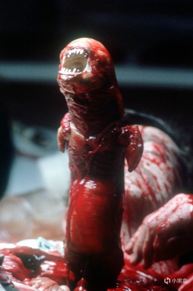 幼小的“異形”帶着血絲與粘液從胸腔中誕生,貪婪而又輕蔑地吸光了寄生者的血肉。《獵人之首》以一個更高等的文明狀態——獵人與獵物之間的關係,去衍生這種設定。