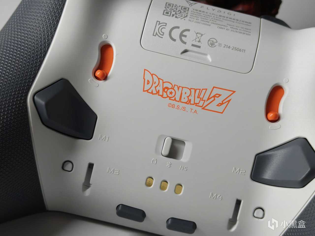 手柄背面以白色爲背景色,兩個扳機和扳機鎖都採用了橙色,背部中間位置印有橙色的《龍珠Z》LOGO標識,瞬間拉滿情懷值。