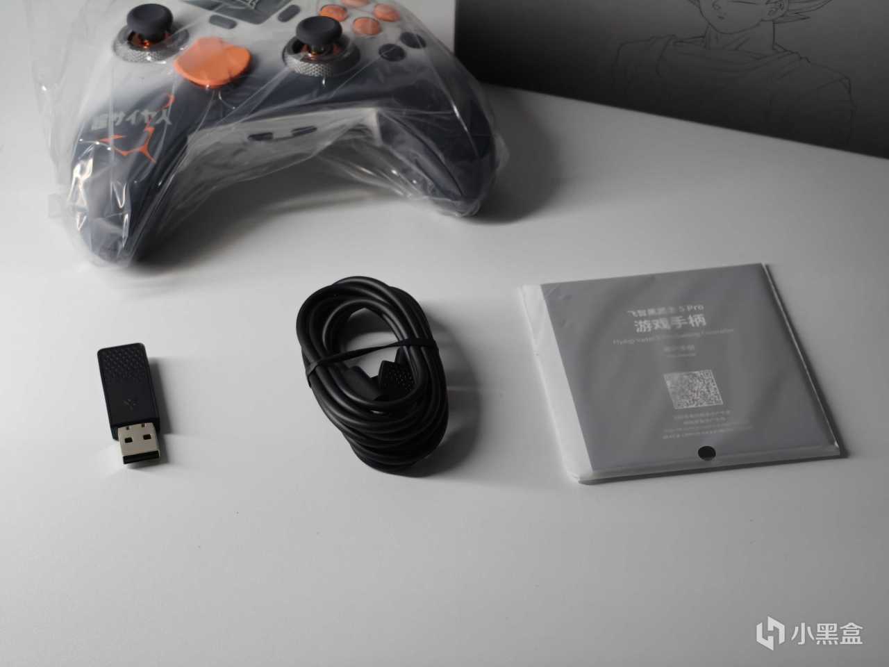 打開包裝,有內部包裝保護,取出手柄及配件,手柄有透明袋再一次保護,配件有接收器,數據線和說明書。
