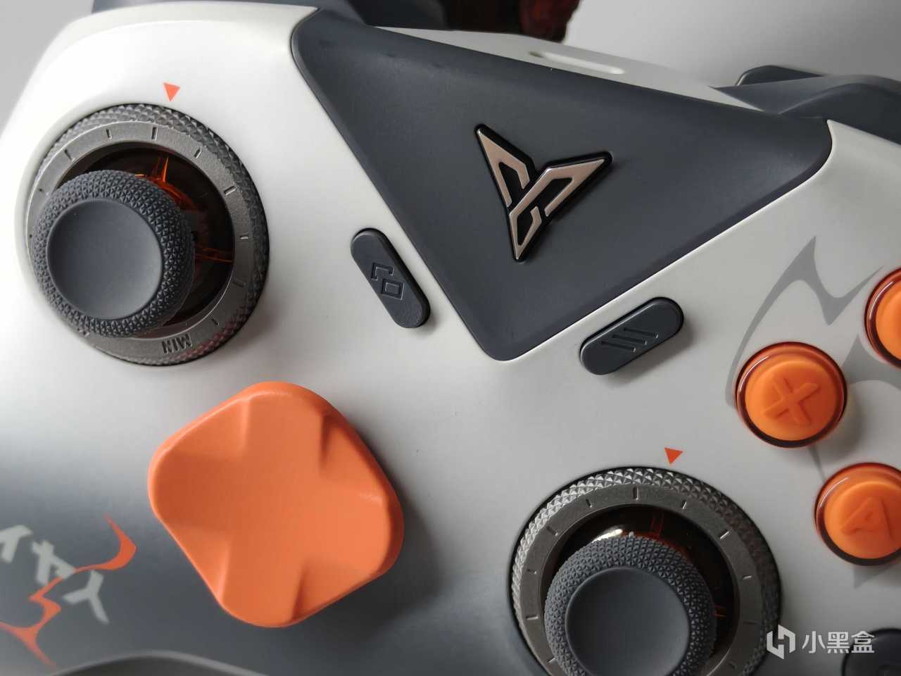 與標準版相比,聯名款取消了三角蓋板區的金粉點綴,同時也將搖桿阻尼環改爲金屬銀灰色。十字鍵也採用了橙色設計,和動作鍵搭配辨識度提高了很高。