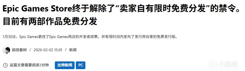 Epic Games於1月30日更新開發者政策,正式允許發行商自行開展“限時免費促銷”,不再侷限於Epic官方主導的每週免費活動。此前,類似自主免費分發僅在Steam等平臺上常見。