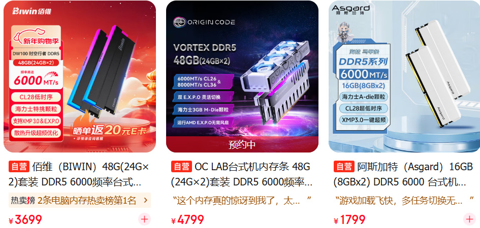 最近一直處理訂單和售後,忙完回頭一看!一套D5 6000內存竟再度暴漲至一套3K?!