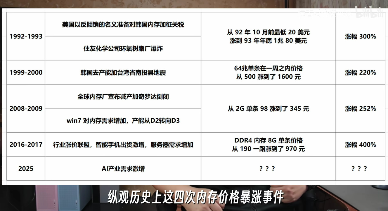 歷史上一共有過四次內存暴漲週期,最短的一次持續了一年零三個月