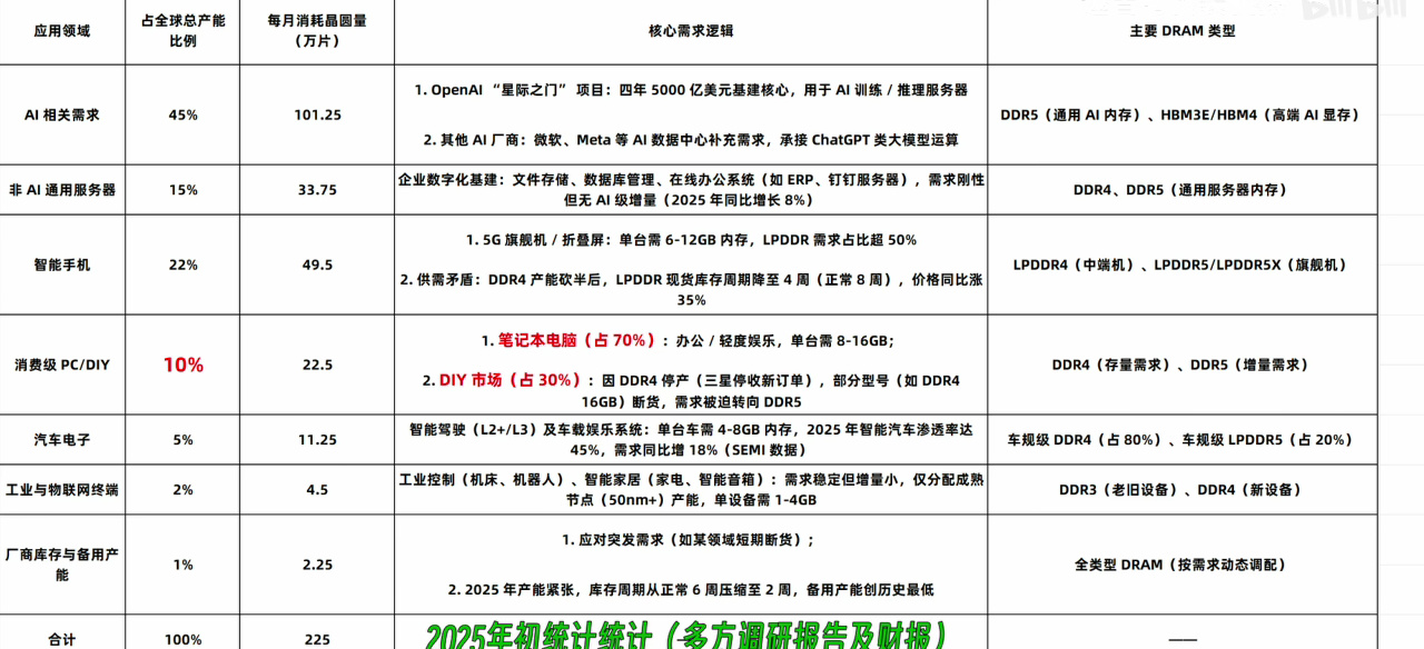 這裏是裝機猿整理的圖,消費級需求在整個存儲行業現在只佔據可憐的10%左右: