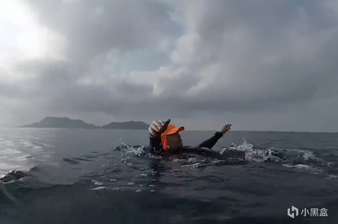 上岸時,他的皮膚因長時間浸泡而發白,卻笑着說:又跨過了一道坎。
