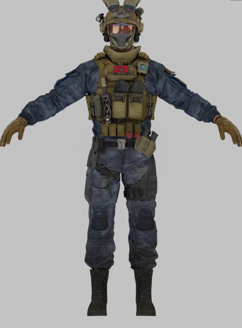 首先最突出的眼罩換成了面罩,契合宇航服的特點。但同時還是保留了夜視儀的設計,畢竟這也是威龍的龍元素特點,並且會顯得頭部會更加的飽滿。