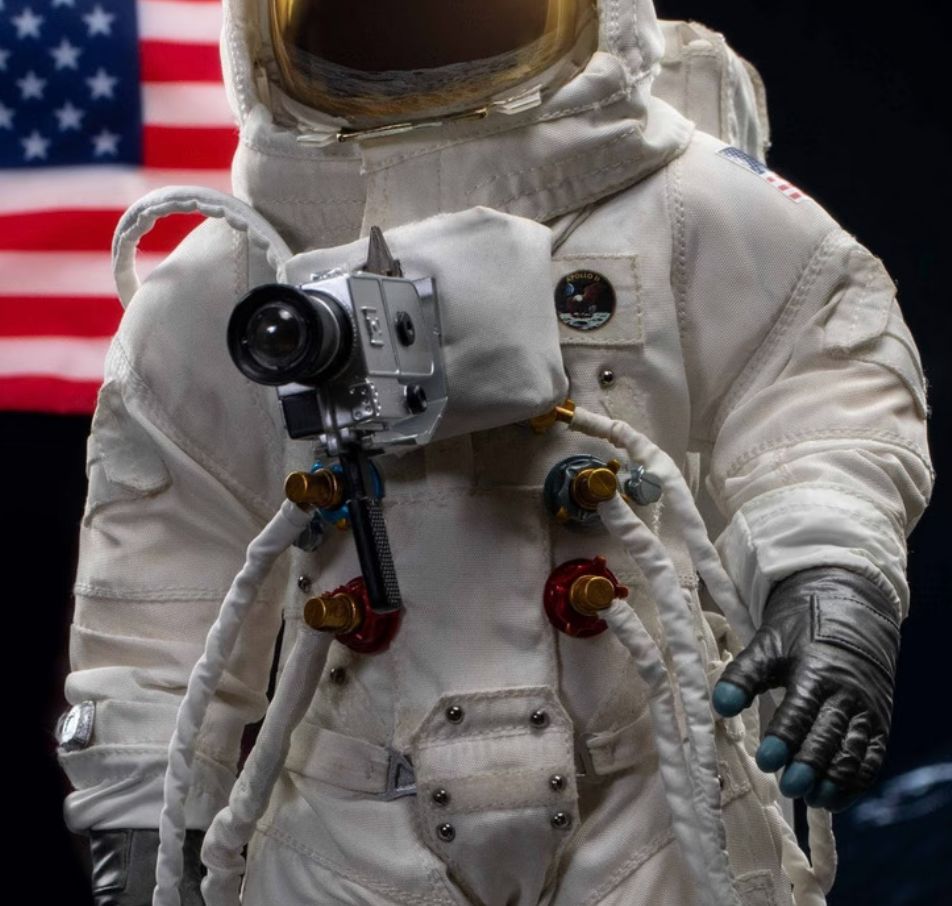 同時衣服的設計,只要仔細看還是很明顯看得出是宇航服,肩部和背部有噴氣口的設計。