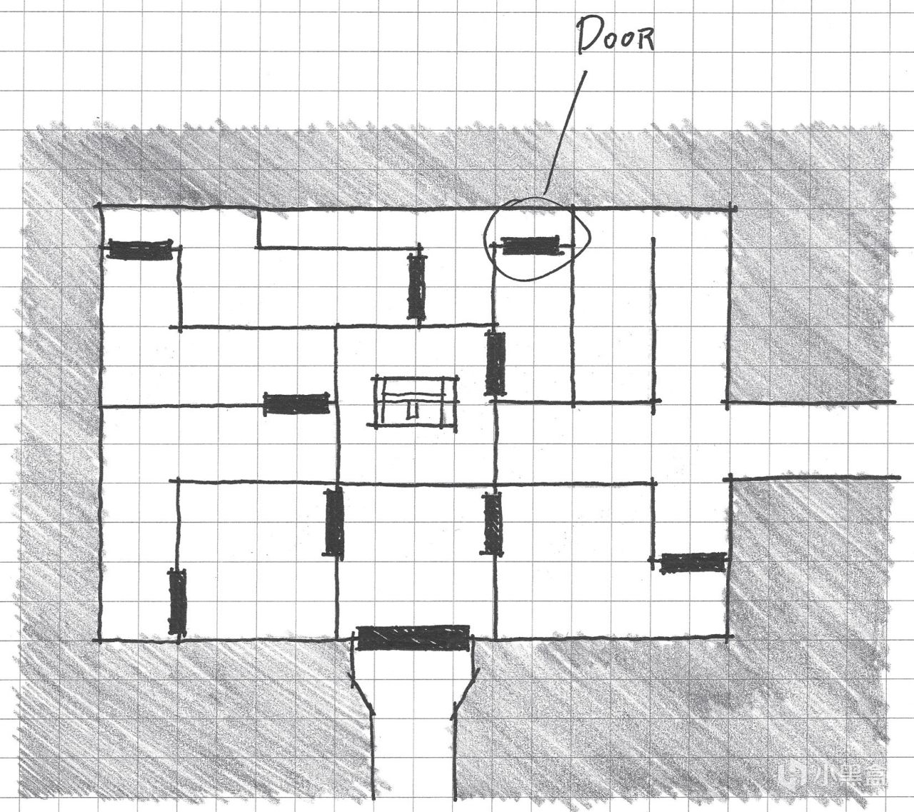 因此,除了禪意視角之外,音樂等其他元素也常被用來暗示這些空間的存在。當玩家接近這些區域時,音樂逐漸淡入,不僅能吸引玩家進行探索,還可能改變玩家的行爲模式:例如,一名受傷的玩家可能會循着音樂快速奔向那個“也許能提供安全與治療”的空間。從空間層面來看,對冥想空間的預示往往更加含蓄,其入口常常被分叉的路徑部分遮擋。這種細微的“提前暗示”是弗蘭克·勞埃德·賴特某些住宅設計中的一個重要元素,接下來我們將對此進行探討。