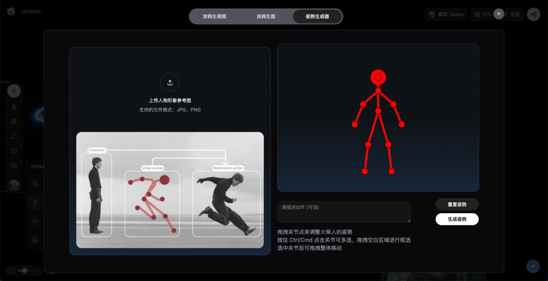 它專門爲短片需求添加了許多快捷功能,比如九宮格分鏡,姿態生成器,一鍵三視圖,專業攝像機庫