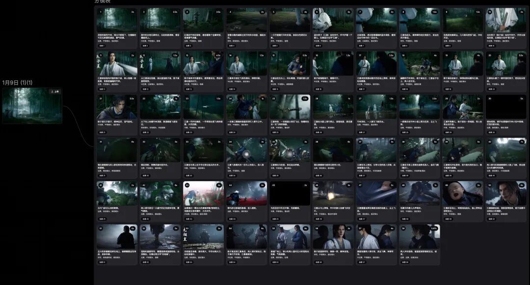 過了差不多10分鐘,生成了 60 多個詳細分鏡。。。