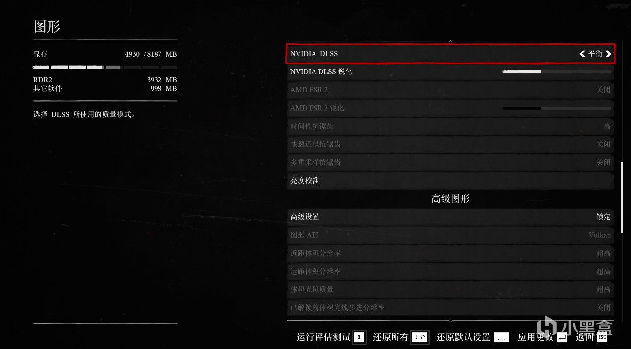 DLSS / FSR:開啓“質量 (Quality)”“平衡 (Balanced)”檔位。